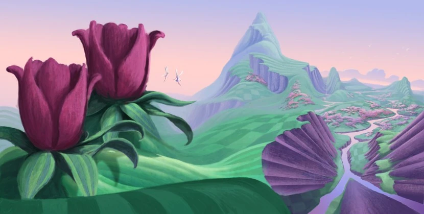 - Magiczna Łąka – wiejski region Wróżkolandii, jej strażniczką jest Topaz. Mieszka tu Elina w swoim kwiecie Peonii.