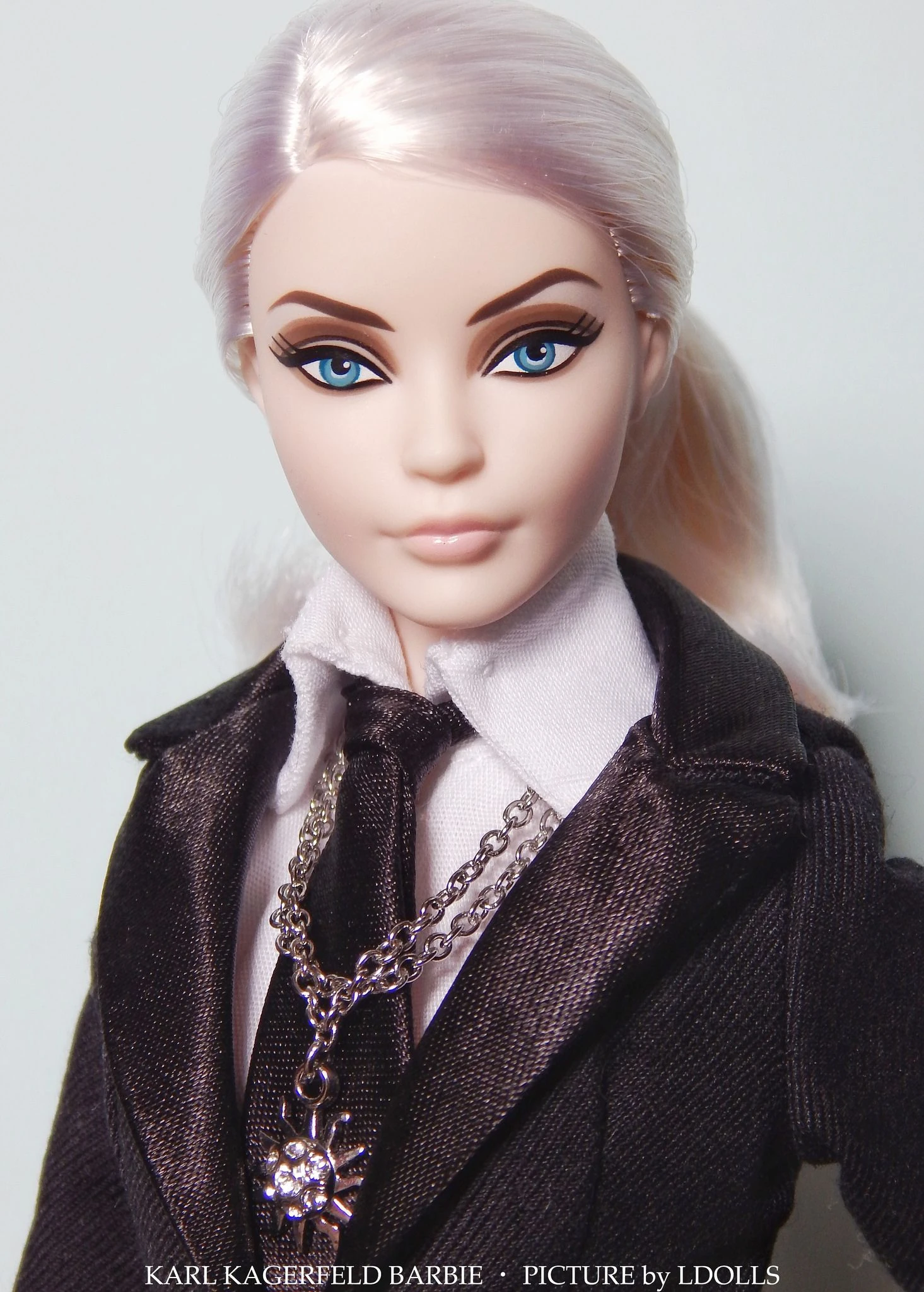 This new face sculpt was created for the brand collaboration doll Karl Lagerfeld Barbie, a Platinum Label of no more than 999 units worldwide. This face became the standard Barbie face for all collector dolls ever since it debuted, replacing the previously overused Bob Mackie (Face Sculpt ©1991), which also resulted from a collaboration with a prestigious fashion designer.